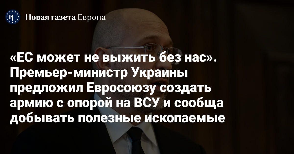 ВСУ могут стать основой для создания армии Евросоюза, заявил премьер-министр Украины Денис Шмыгаль в своей колонке для Politico. Он также предложил странам Евросоюза совместно добывать полезные ископаемые в Украине.