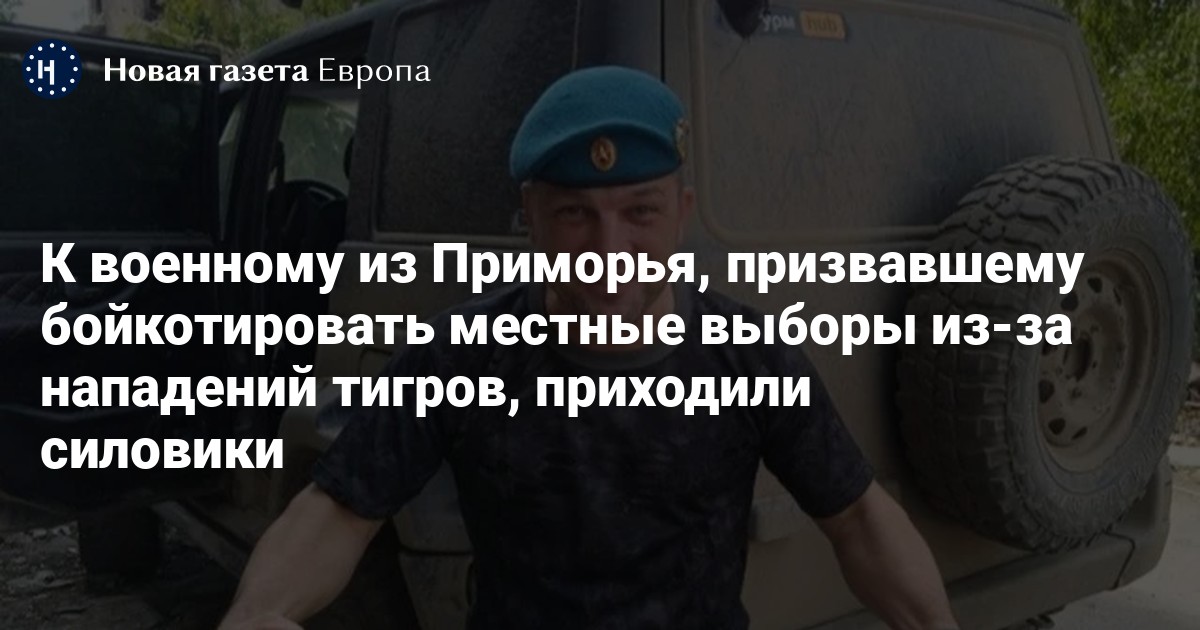 К военному и активисту села Зелёновка Максиму Шумару приходили полицейские после того, как он записал обращение к Путину и призвал бойкотировать местные выборы из-за участившихся нападений тигров. Об этом он рассказал в своих соцсетях.