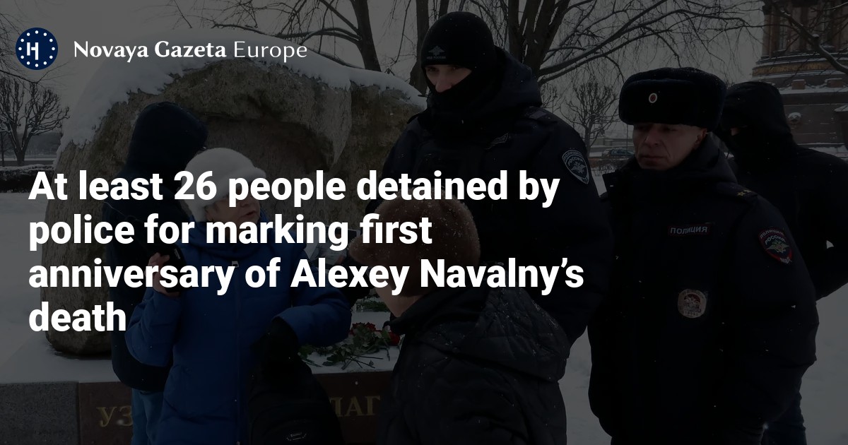 At least 26 people in 12 cities across Russia were detained by police on Sunday for attending unsanctioned rallies commemorating the first anniversary of Russian opposition leader Alexey Navalny’s death in prison, Russian human rights organisation OVD-Info reported.