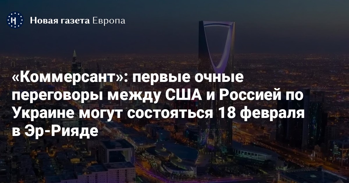 Первые официальные очные переговоры между Россией и США по вопросу войны в Украине могут состояться 18 февраля в Эр-Рияде, пишет «Коммерсант» со ссылкой на источник.