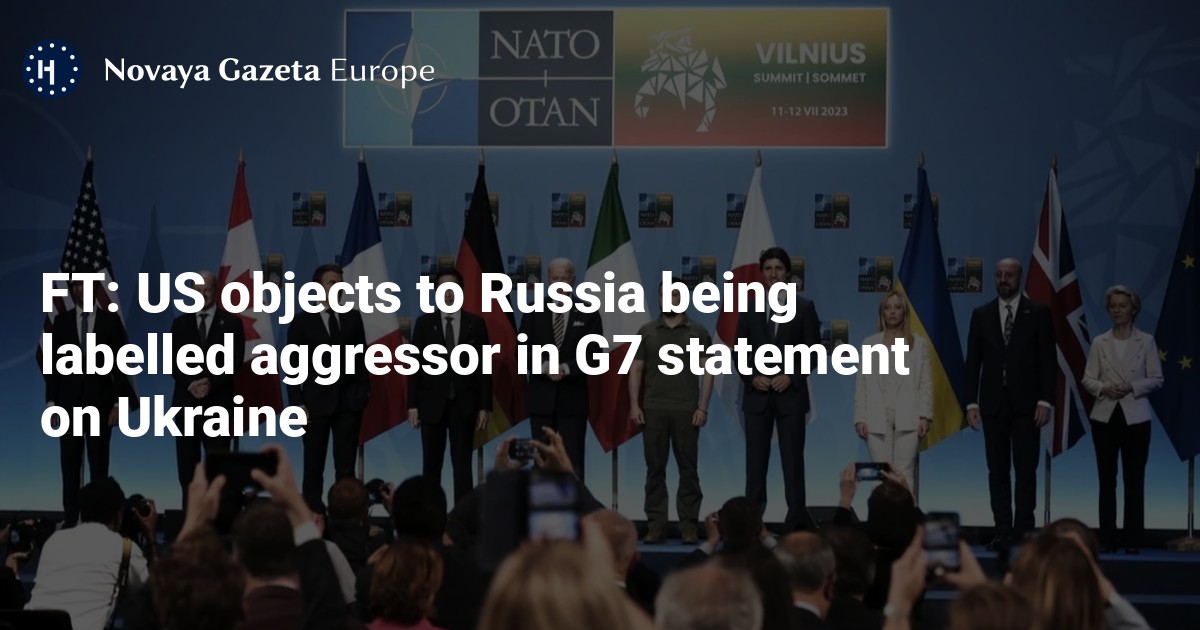 Washington is opposed to calling Russia the aggressor in a G7 statement timed to coincide with the third anniversary of the Russian invasion of Ukraine, The Financial Times reported on Thursday citing Western officials familiar with the matter.