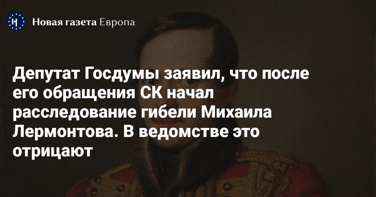 Депутат Госдумы заявил, что после его обращения СК начал расследование гибели Михаила Лермонтова. В ведомстве это отрицают