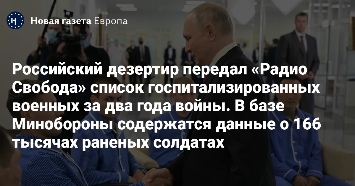 Бывший командир отделения эвакуации раненых 144-й гвардейской мотострелковой дивизии ВС РФ Алексей Жиляев, дезертировавший из армии и переехавший во Францию, передал «Радио Свобода» базу данных Главного военно-медицинского управления Минобороны, в которой содержатся сведения о 166 тысячах пациентов. Журналисты публикуют анализ документа.