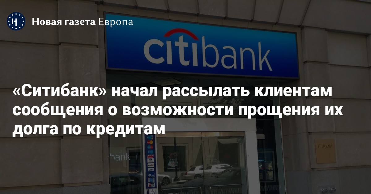 Уходящий из России «Ситибанк» начал рассылать клиентам сообщения о возможности простить их долги по кредитам, пишет РБК.