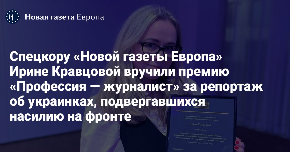 Спецкор «Новой газеты Европа» Ирина Кравцова стала лауреатом премии «Профессия — журналист» 2024 года в номинации «Расследование». Победители были объявлены на церемонии награждения.