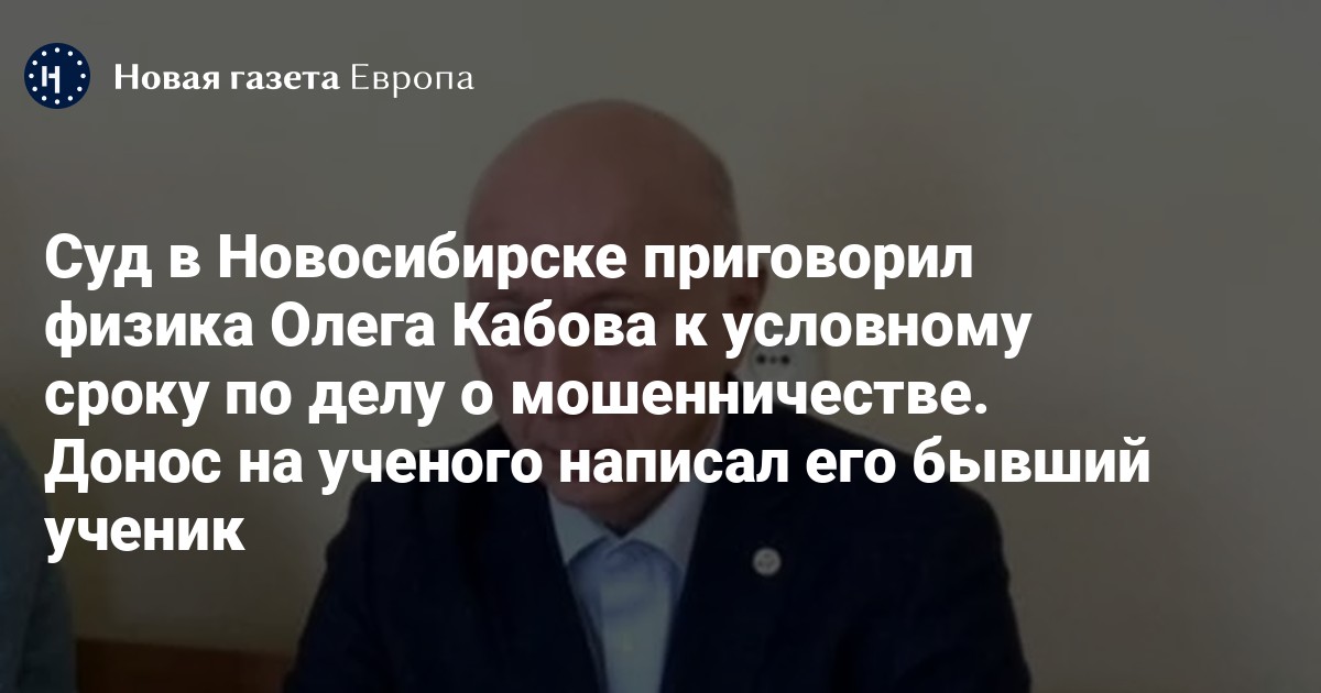 Советский районный суд Новосибирска приговорил физика Олега Кабова к пяти годам лишения свободы условно. Об этом сообщили в пресс-службе судов региона.