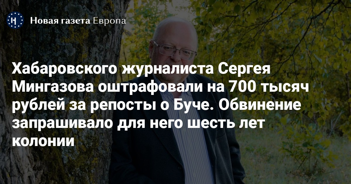 Хабаровского журналиста Сергея Мингазова оштрафовали на 700 тысяч рублей за репосты о Буче. Обвинение запрашивало для него шесть лет колонии