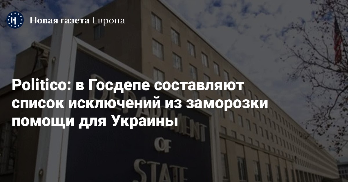 Высокопоставленные чиновники Госдепартамента США составляют список исключений из заморозки иностранной помощи для Украины, пишет Politico со ссылкой на источники и соответствующий документ.