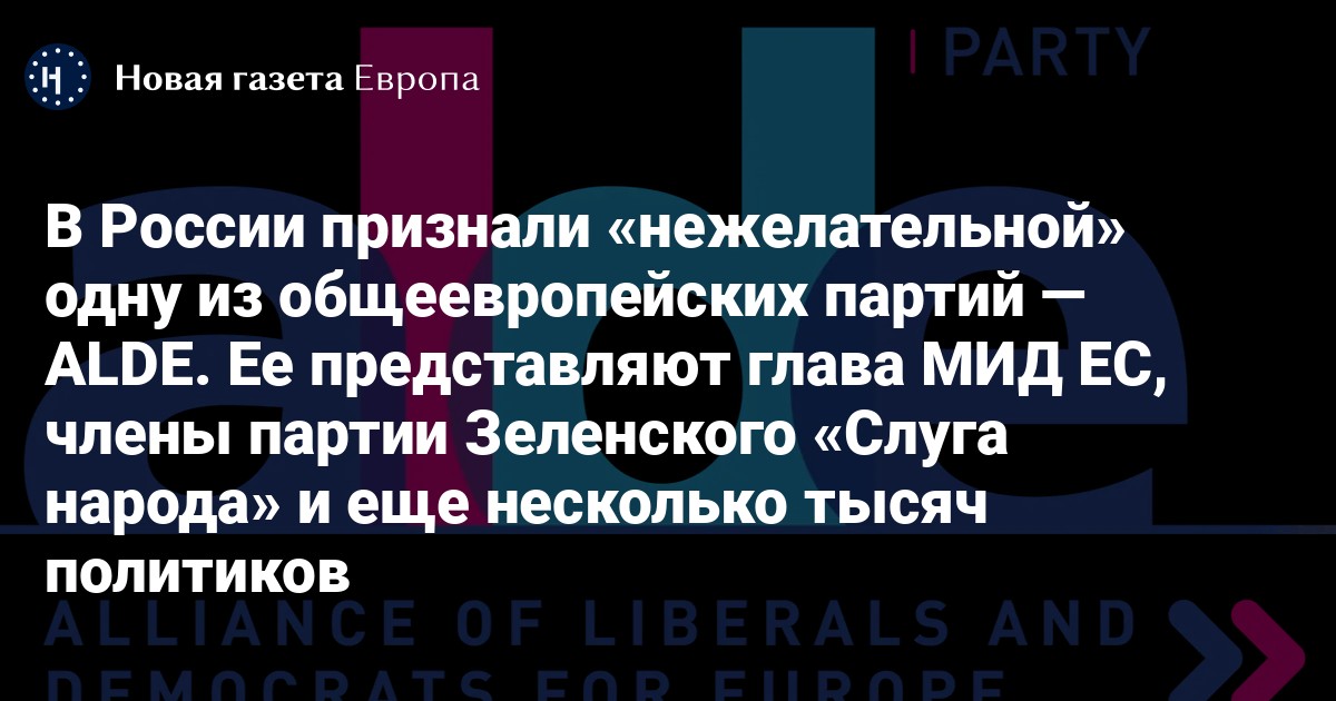 Генпрокуратура РФ признала «нежелательной» деятельность зарегистрированной в Бельгии партии «Альянс либералов и демократов за Европу» (ALDE party) и ее молодежного крыла «Европейская либеральная молодежь» (LYMEC).