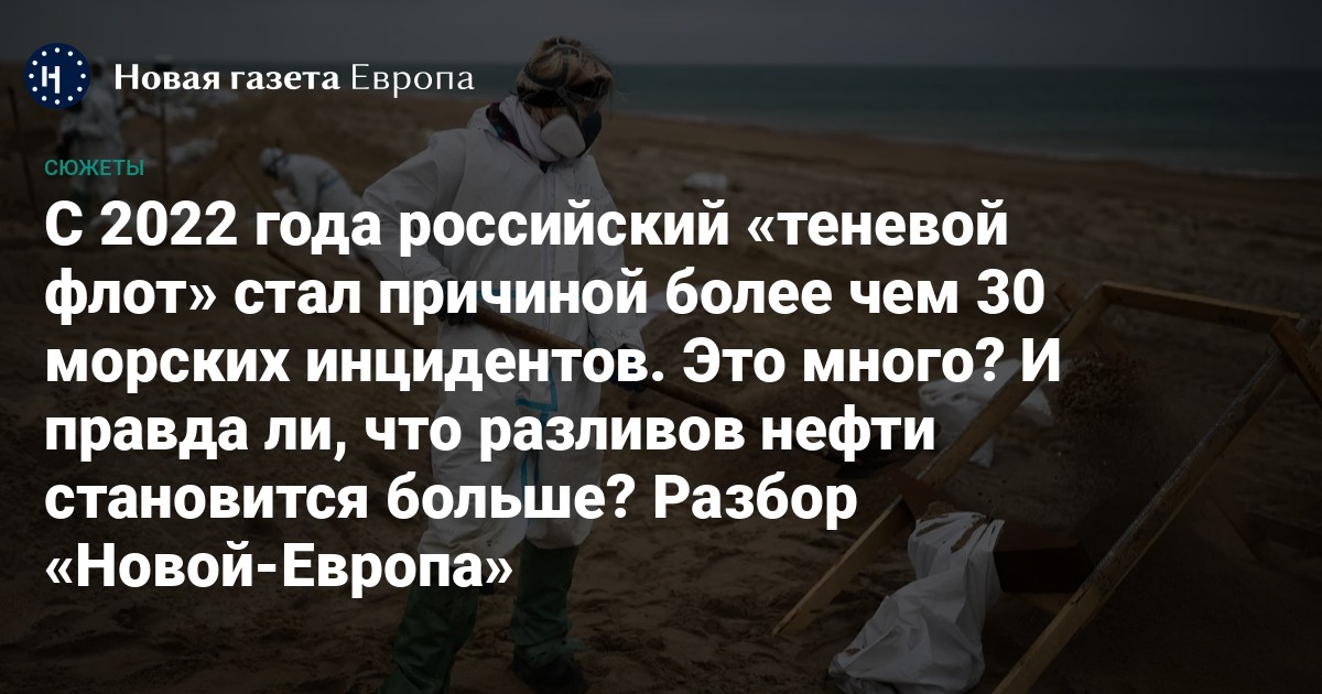 Но данные мониторингового портала EMSA, говорит Вакуленко, показывают, что если суда, идущие в Россию или из нее, попадают в такие происшествия один-три раза в год, то в целом со всеми танкерами в водах вокруг ЕС ежегодно регистрируется от 15 до 25 подобных инцидентов. «С 2022 года число таких происшествий не выросло, и ни одно из более чем 250 происшествий с 2011 года (до него нет статистики мониторинговой системы EMSA. — Прим. “Новая-Европа”) не привело к разливу нефти», — добавил эксперт.