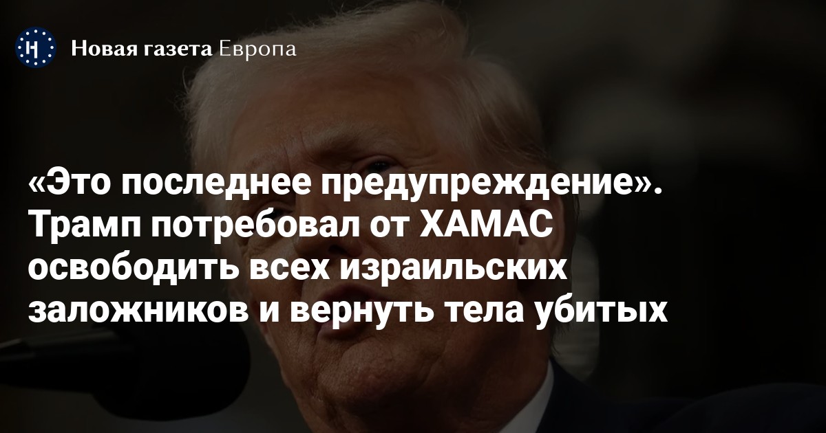 Президент США Дональд Трамп потребовал от палестинской группировки ХАМАС освободить всех израильских заложников и вернуть тела убитых. Об этом он заявил в своей соцсети Truth Social, подчеркнув, что «это последнее предупреждение».