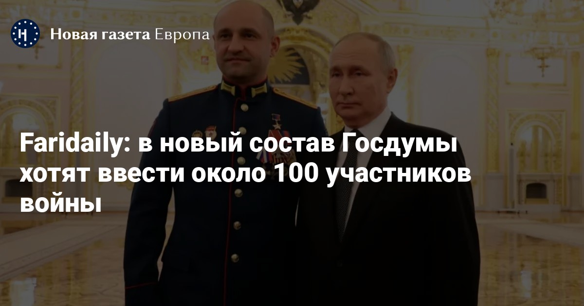 Faridaily: в новый состав Госдумы хотят ввести около 100 участников войны