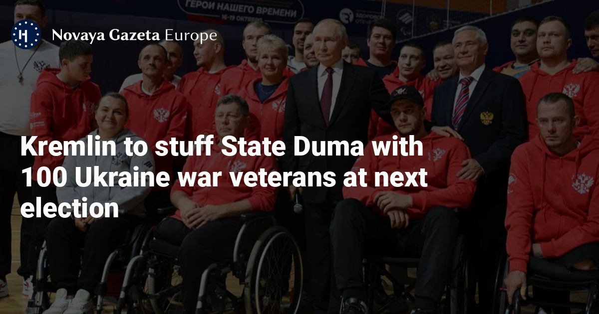 Russia’s Presidential Administration intends to have roughly 100 veterans of the war in Ukraine elected to the State Duma, Russia’s lower house of parliament, in next year’s parliamentary elections, Telegram channel Faridaily reported on Thursday.