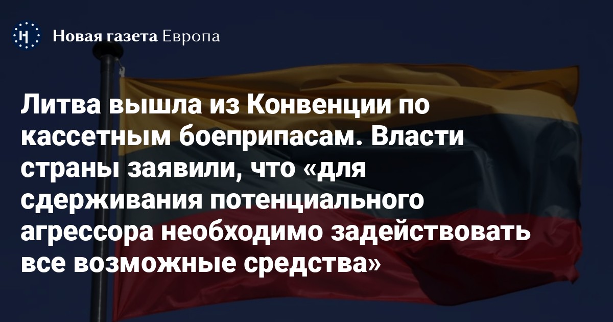 Литва вышла из Конвенции по кассетным боеприпасам. Власти страны заявили, что «для сдерживания потенциального агрессора необходимо задействовать все возможные средства»