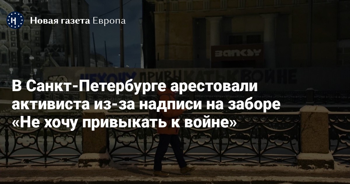 В Санкт-Петербурге арестовали активиста из-за надписи на заборе «Не хочу привыкать к войне»