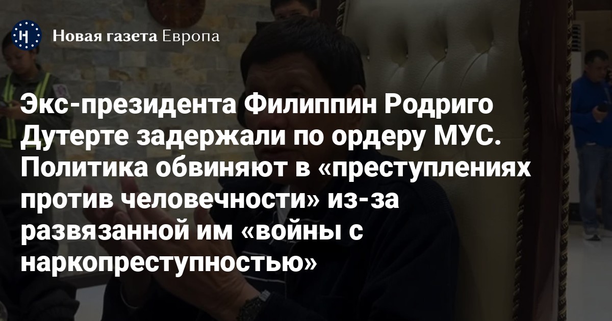 «По прибытии [Дутерте] генеральный прокурор вручил МУС уведомление о выдаче ордера на арест бывшего президента за преступление против человечности. Сейчас он находится под стражей у властей», — заявили в правительстве страны.