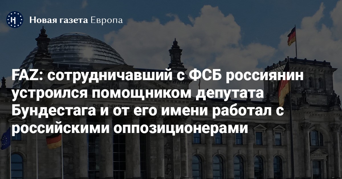 Депутат Бундестага, член Христианско-демократического союза Кристиан Хирте нанял в помощники россиянина, который имел связи с Кремлем и ФСБ. Об этом сообщает Frankfurter Allgemeine Zeitung (FAZ).