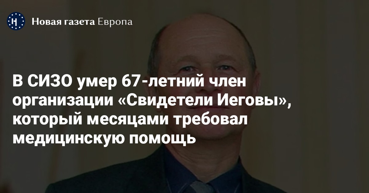 В СИЗО №3 Новороссийска Краснодарского края скончался 67-летний член организации «Свидетели Иеговы» Валерий Байло, пишет «Кавказский узел» со ссылкой на его сына и адвоката.