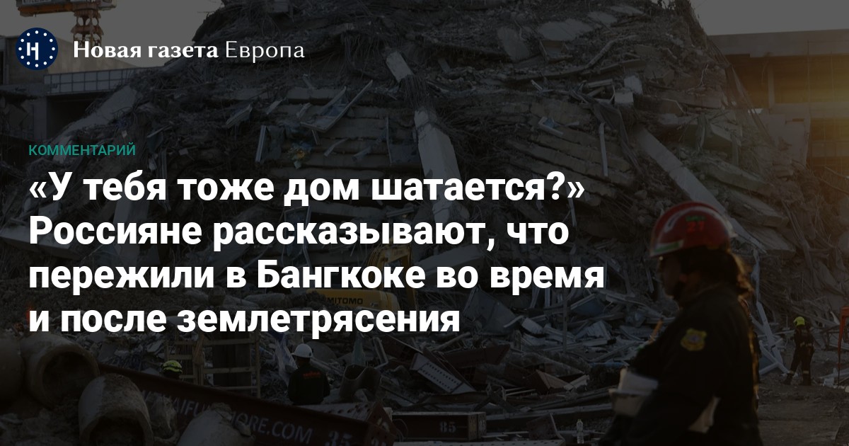 Во всех чатах сначала была паника, сейчас вроде все поняли, что эпицентр был в Мьянме. Эвакуированы жилые многоэтажки, ТЦ и офисы. Все соседи вместе с нами сейчас на улице, ждем сообщения об афтершоках (повторных подземных толчках, возникающих после основного, наиболее мощного подземного толчка при землетрясении. — Прим. ред.) и возможности вернуться домой. В Бангкок уже пришло лето и на улице сейчас очень жарко. Спасаемся в клочках тени.