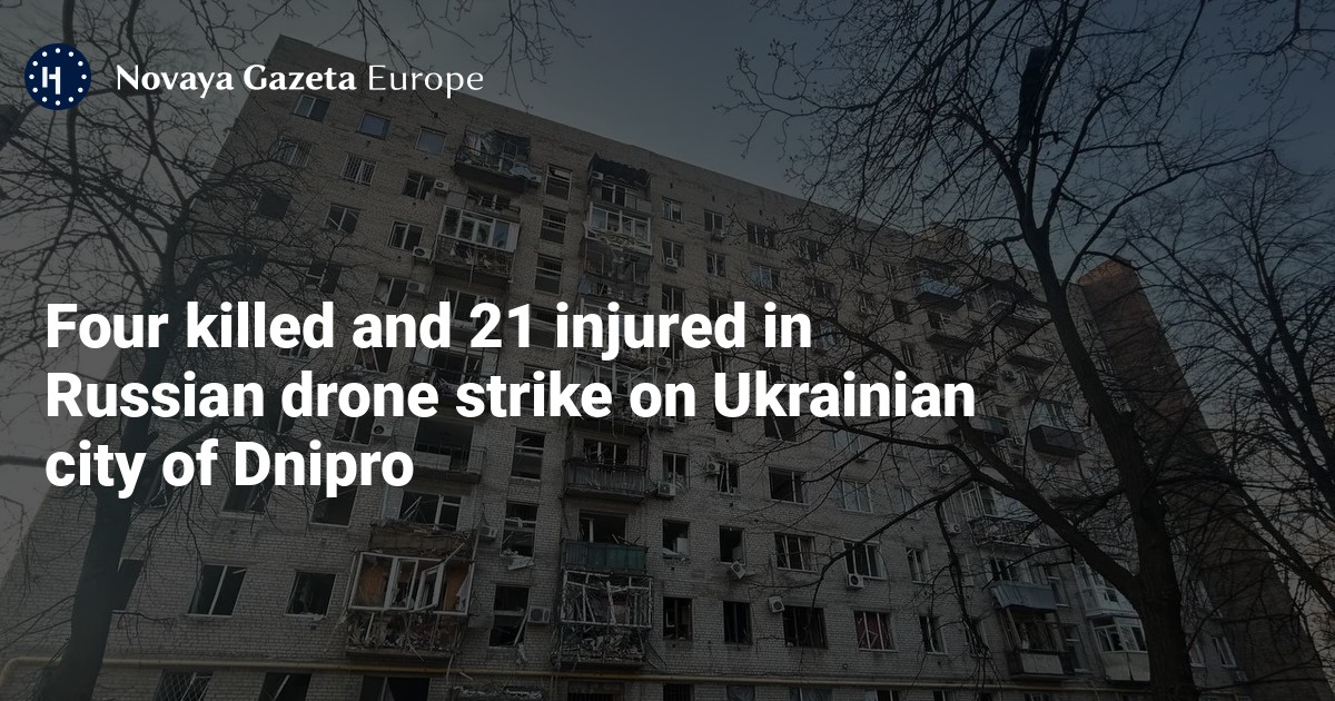 Four people were killed and 21 injured in a Russian drone strike on the central Ukrainian city of Dnipro on Friday night, the State Emergency Service of Ukraine reported on Saturday.