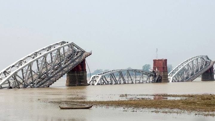 Обрушившийся мост Ава после землетрясения в Мандалае, Мьянма, 29 марта 2025 года. Фото: EPA