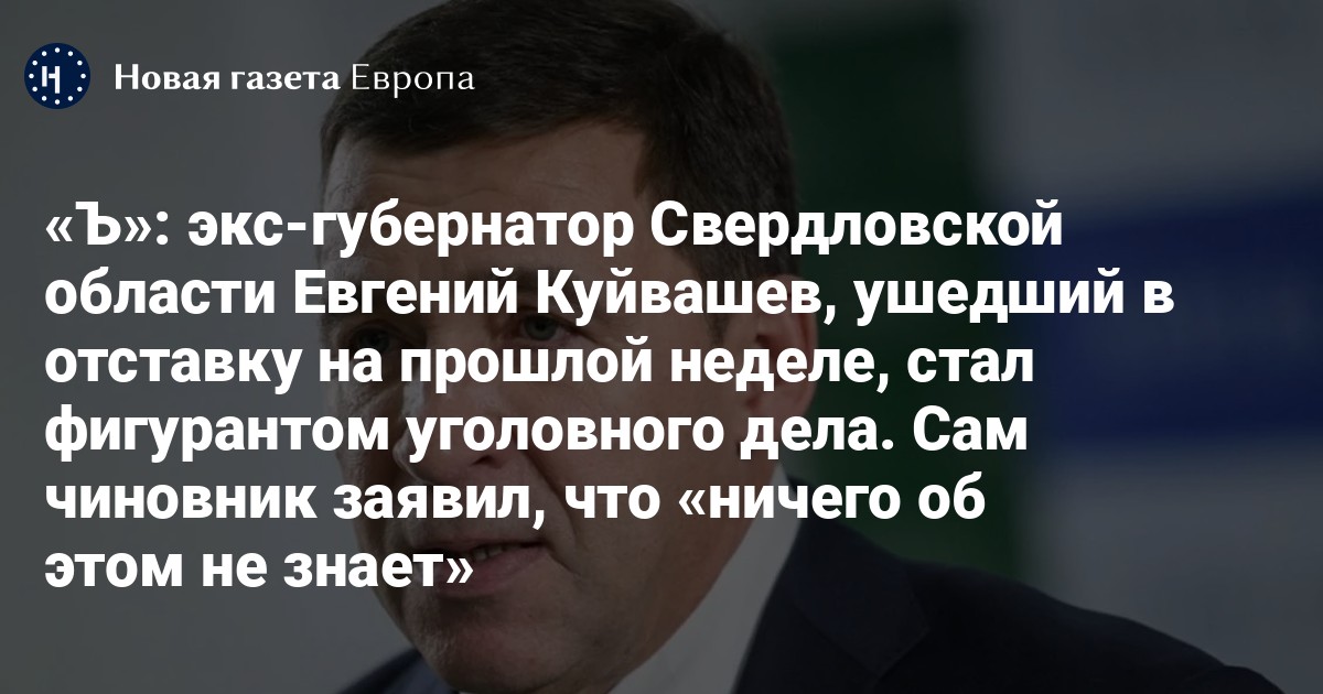 Бывший губернатор Свердловской области Евгений Куйвашев стал фигурантом уголовного дела «коррупционной направленности», с ним несколько дней идут следственные действия. Это утверждает «Коммерсант» со ссылкой на несколько анонимных источников.