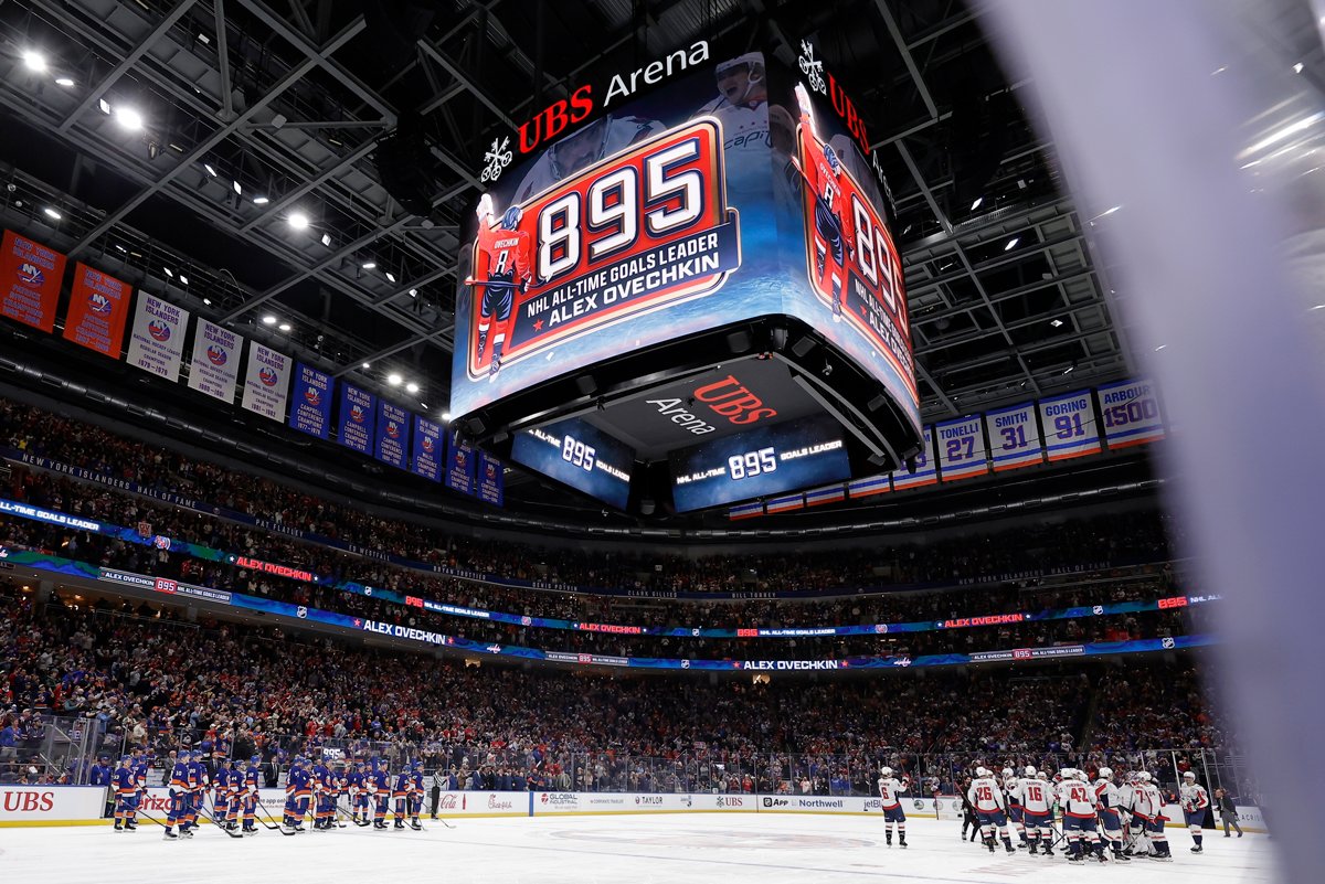 Счетчик голов Овечкина во время матча в Нью-Йорке, 6 апреля 2025 года. Фото: Adam Hunger / AP Photo / Scanpix / LETA