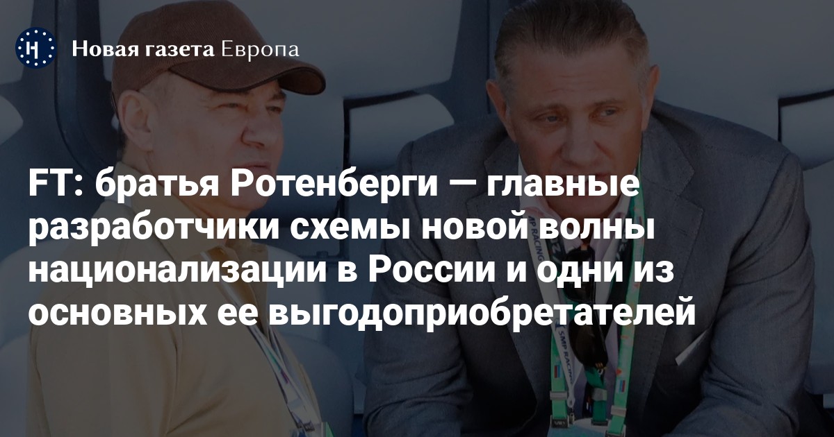 Бизнесмены Аркадий и Борис Ротенберги разработали «всю» концепцию «мягкой национализации» в России, которая случилась после начала войны в Украине и ухода западных компаний. Об этом сообщает Financial Times.