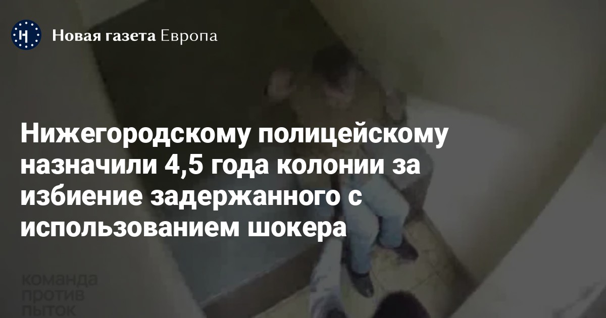 Выксунский городской суд Нижегородской области приговорил к 4,5 года колонии полицейского Александра Гутова по обвинению в превышении должностных полномочий с применением пыток (ч. 4 ст. 286 УК). Об этом сообщает «Команда против пыток».