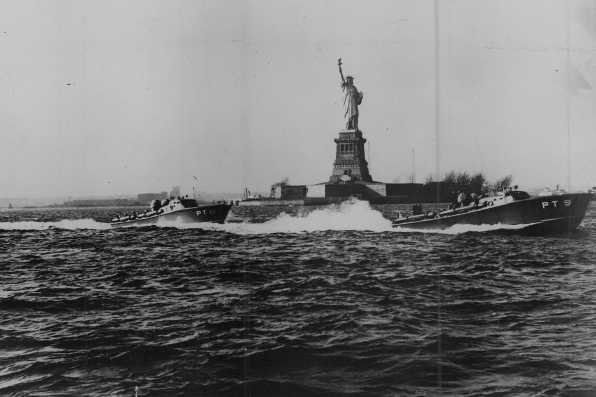 Флотилия американских катеров «Москито», построенных для Великобритании в рамках закона о ленд-лизе, на учениях в гавани Нью-Йорка, 21 марта 1941 года. Фото: Northcliffe Collection / ANL / Shutterstock / Rex Features / Vida Press