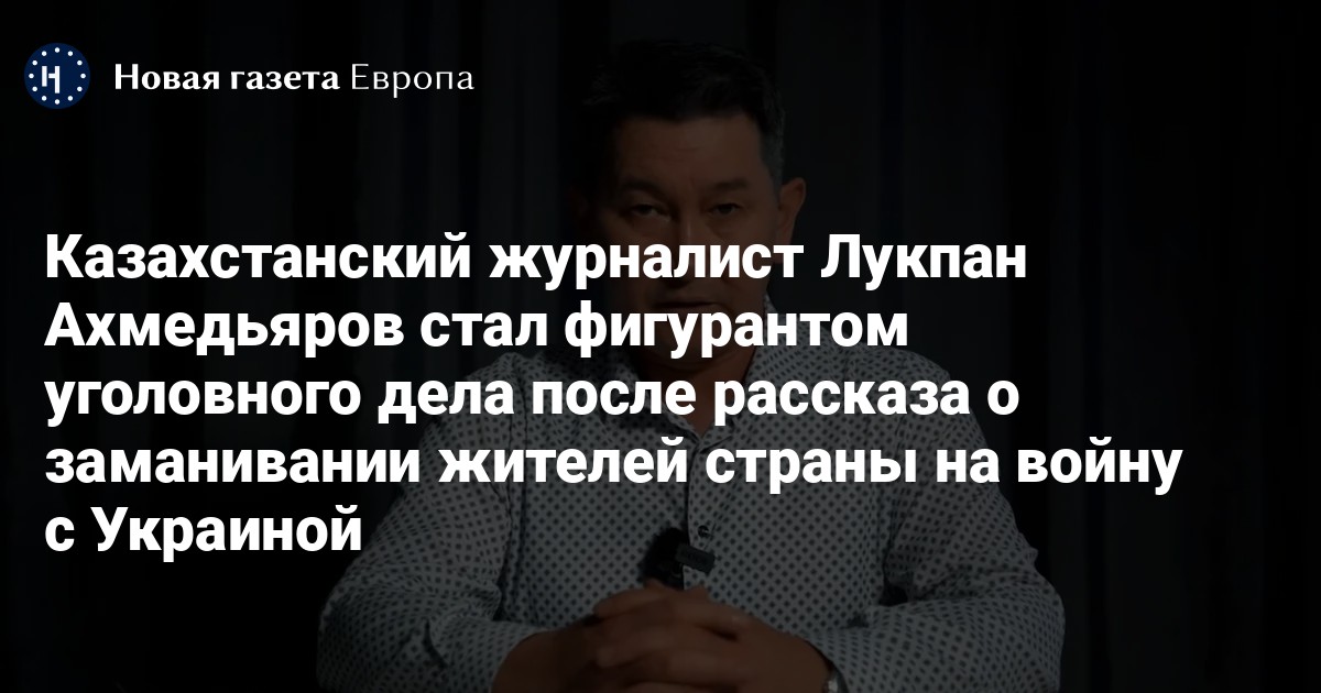 Казахстанский журналист, автор ютуб-канала «Просто журналистика» Лукпан Ахмедьяров проходит свидетелем с правом на защиту по уголовному делу о распространении заведомо ложной информации, повлекшей причинение крупного ущерба (ст. 274 УК РК). Об этом сообщил сам журналист, информацию также подтвердила юрист общественной организации «Правовой медиа-центр» Гульмира Биржанова.