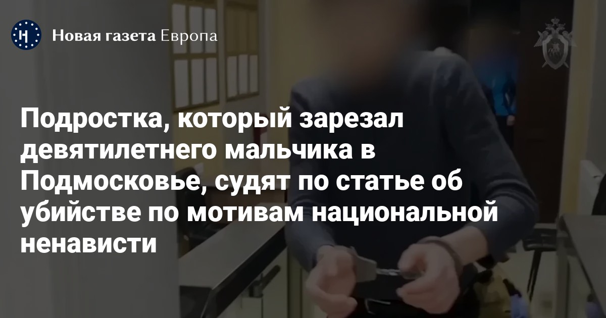 Против 14-летнего подростка, который зарезал насмерть девятилетнего мальчика в подмосковном поселке Некрасовский, возбудили уголовное дело по статье об убийстве по мотивам национальной ненависти (п. «в», «л» ч. 2 ст. 105 УК). Об этом сообщили в СК, внимание на публикацию обратил портал «Антифа ру».