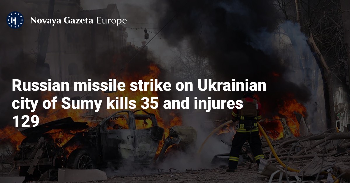 Thirty-five people were killed and another 129 were injured in a Russian ballistic missile strike on the city of Sumy in northeastern Ukraine on Sunday morning, the State Emergency Service of Ukraine has announced.