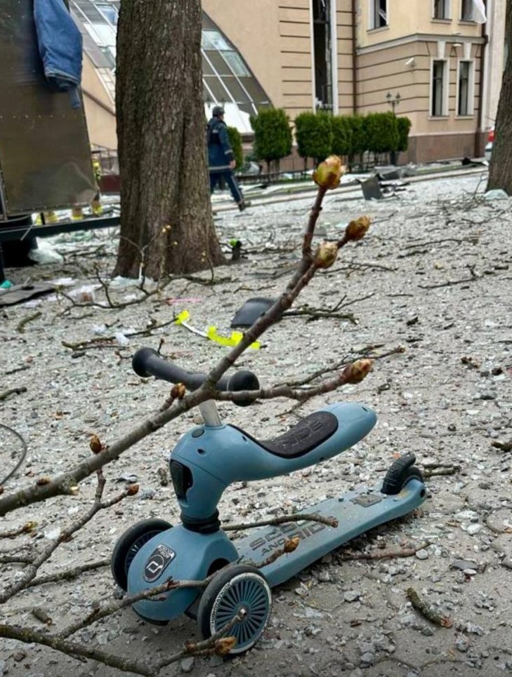 The acting mayor of Sumy, Artem Kobzar, said the attack, which took place around 10:15am local time, had coincided with Palm Sunday, a Christian celebration that takes place a week before Easter, and posted a picture of a child’s scooter amid the rubble.
