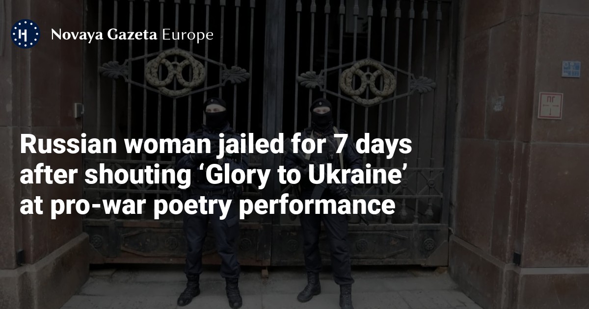 A woman in St. Petersburg has been sentenced to seven days in jail for shouting “Glory to Ukraine” during a poetry performance in the city, independent news outlet Bumaga reported on Monday.