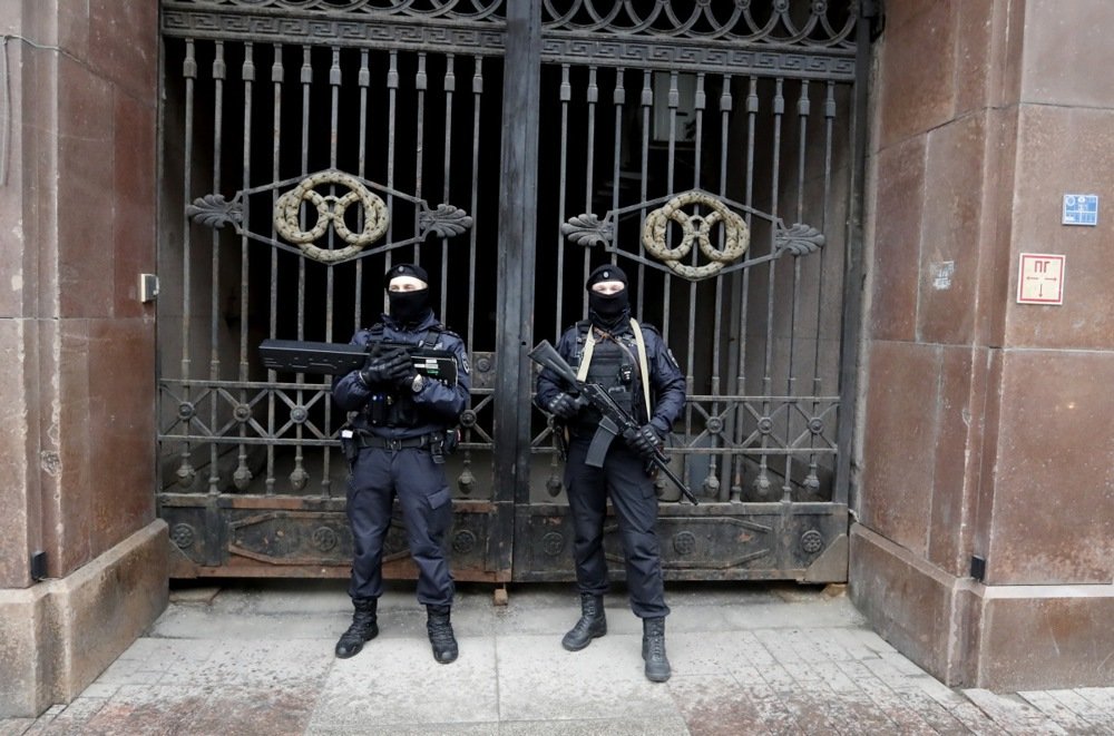 Policemen stand guard on a St. Petersburg street, 23 April 2024. Photo: EPA-EFE/ANATOLY MALTSEV