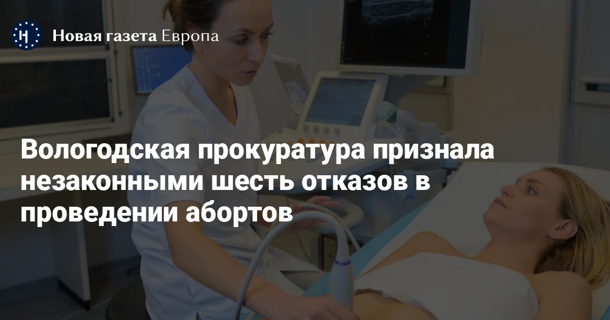 Прокуратура Вологодской области признала незаконными шесть отказов клиник в проведении абортов. Об этом говорится в ответе ведомства на запрос депутата Госдумы Алексея Канаева.