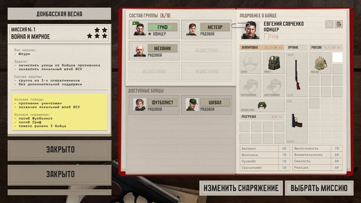 В «Донбасской весне» на выбор предлагаются пять юнитов: четверо из Донбасса, причем один ранее служил в «Беркуте», а еще один, армянин, символизирует многонациональность «ополчения».