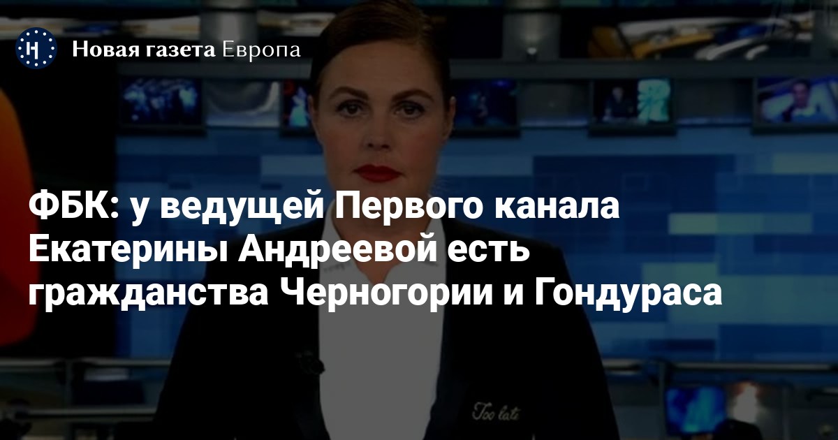 Ведущая новостей на Первом канале Екатерина Андреева помимо российского гражданства имеет также паспорта Черногории и Гондураса. Об этом говорится в расследовании Фонда борьбы с коррупцией (ФБК).