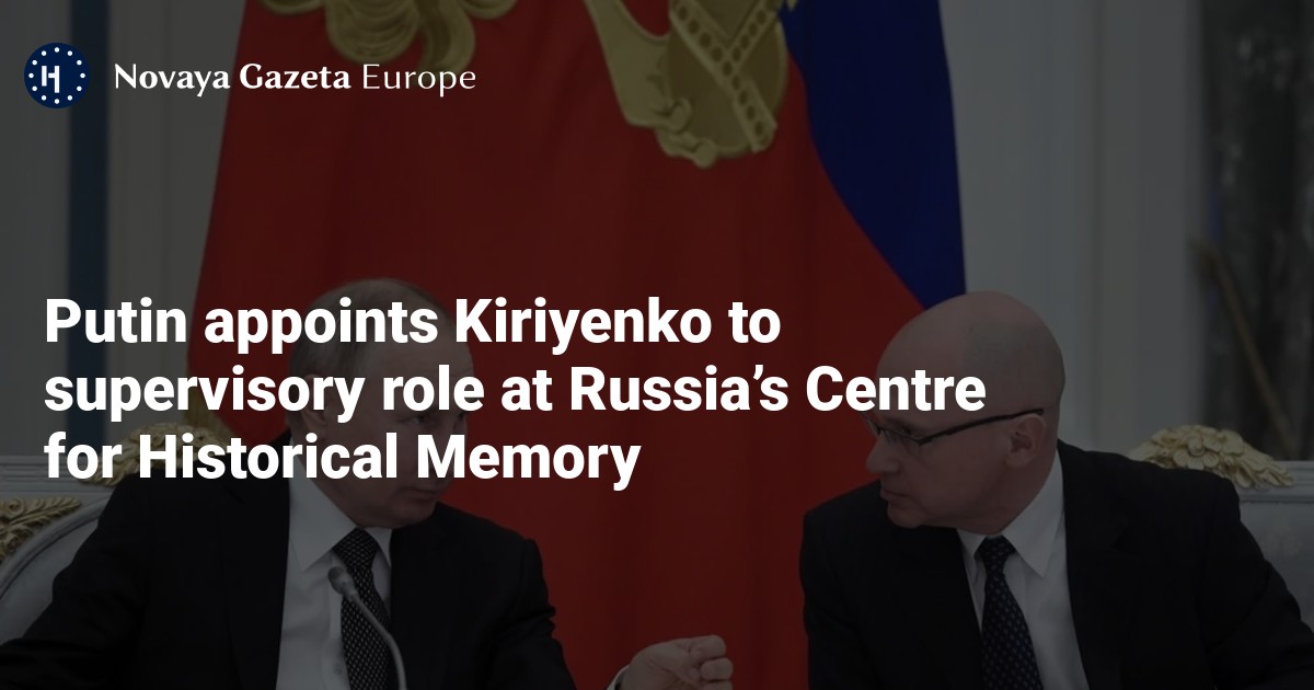 Vladimir Putin has appointed the Kremlin’s highly influential deputy chief of staff, Sergey Kiriyenko, to head the supervisory board of Russia’s Centre for Historical Memory, Novaya Gazeta reported on Thursday.