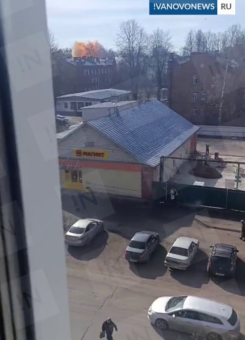 An explosion in Shuya recorded during the attack on Wednesday. Screenshot: IvanovoNews