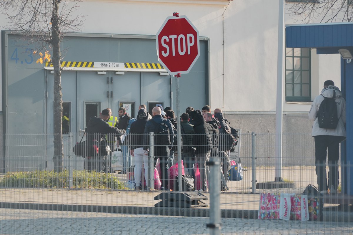 Беженцы на входе в один из центров приема в Дрездене, 14 ноября 2022 года. Фото: xcitepress / ddp / Vida Press