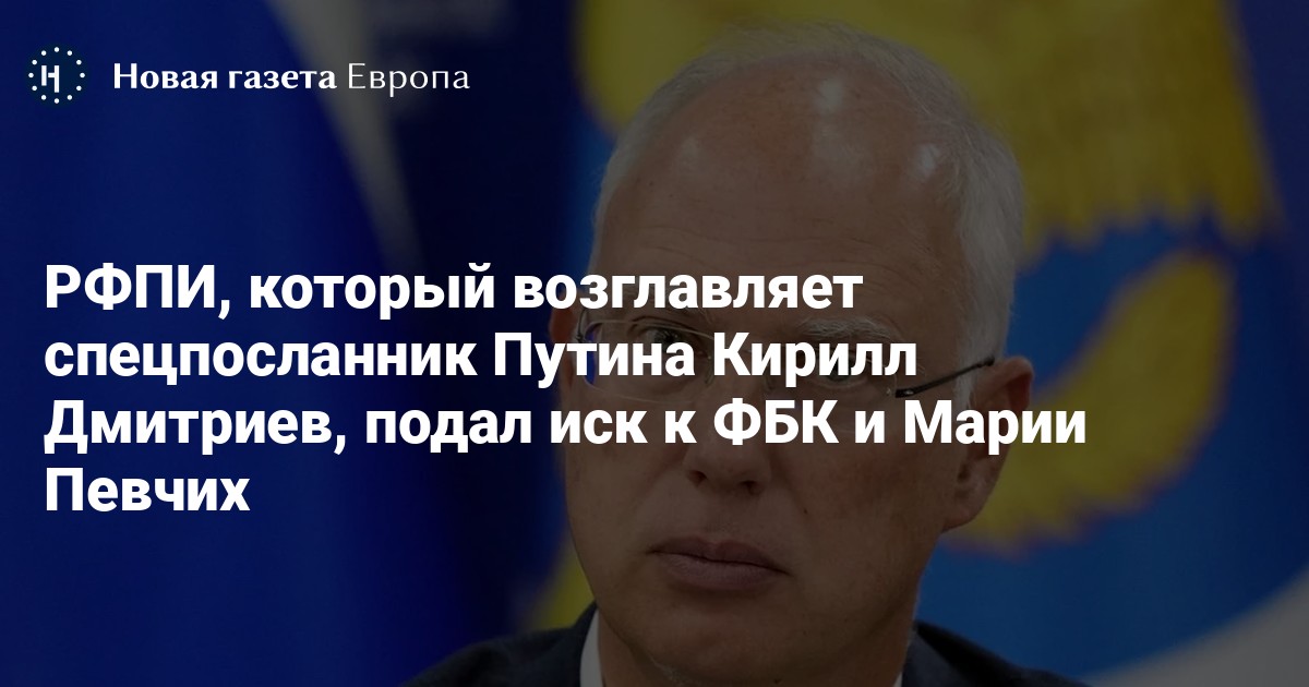 Российский фонд прямых инвестиций подал иск в Арбитражный суд Москвы к Фонду борьбы с коррупцией и главе его отдела расследований Марии Певчих, следует из картотеки арбитражных дел. Об этом пишет ТАСС.
