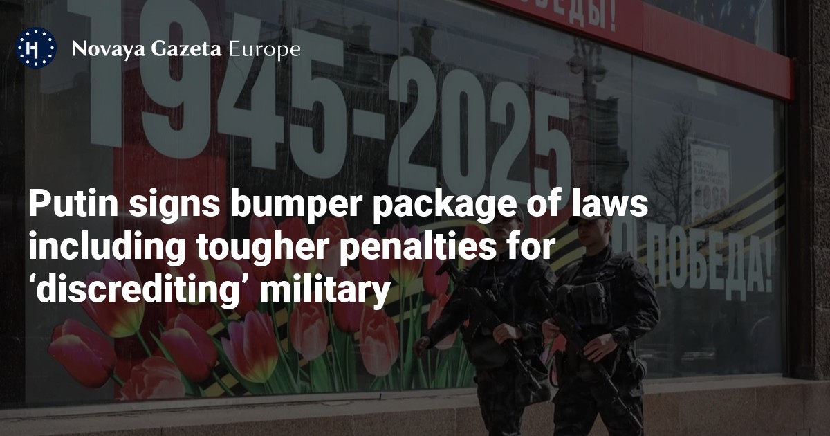 Vladimir Putin signed a package of 18 new pieces of legislation into law on Monday, including an updated version of the military censorship law introduced shortly after the full-scale invasion of Ukraine in 2022, which toughens the existing penalties for “discrediting the military” and “calling for sanctions” against Russia.