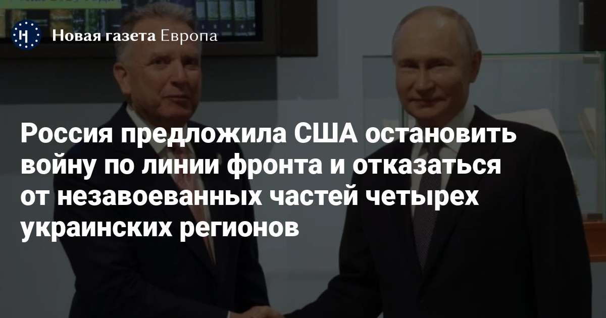 По словам трех собеседников издания, Путин заявил, что Москва готова отказаться от своих претензий на те части четырех частично оккупированных украинских регионов, которые остаются под властью Украины.