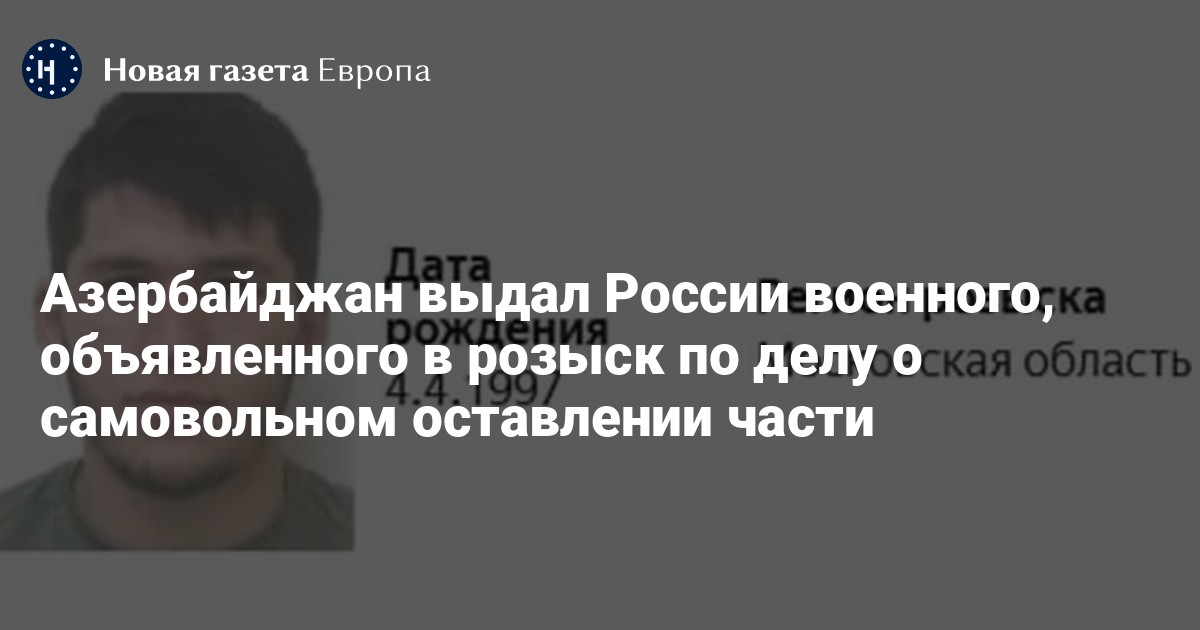 Азербайджан выдал России военного, объявленного в розыск по делу о самовольном оставлении части. Об этом сообщила пресс-служба азербайджанской Генпрокуратуры.