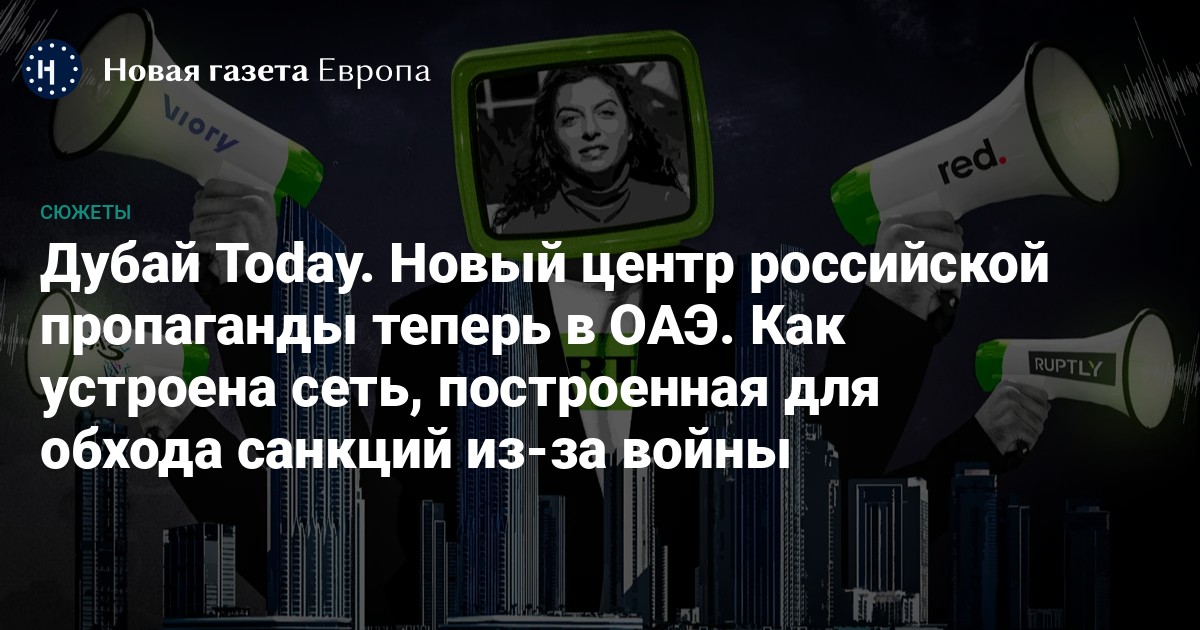 В 2022 году, после начала полномасштабного вторжения России в Украину, российский государственный телеканал Russia Today (сейчас работающий под брендом RT) оказался под санкциями США, Великобритании и Евросоюза. От телеканала отказались дистрибуторы, многим сотрудникам пришлось покинуть западные страны, связанные с телеканалом аккаунты в социальных сетях были заблокированы. Но за три года RT создала целую сеть тайных проектов для того, чтобы обходить запреты и продолжать работать на западную аудиторию. Финансовым и организационным центром для операций RT стали Арабские Эмираты. «Новая-Европа» рассказывает, как главный рупор российской пропаганды продолжает вещать на весь мир из ОАЭ.