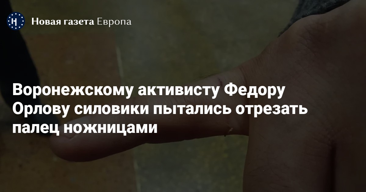 Силовики попытались ножницами отрезать палец воронежскому активисту Федору Орлову во время обыска. Об этом сообщает проект «Слово защите».