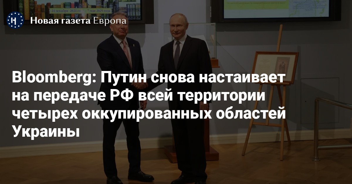 Владимир Путин настаивает на том, чтобы полный контроль РФ над четырьмя оккупированными регионами Украины («ЛНР», «ДНР», Запорожской и Херсонской областями) был частью любого соглашения о прекращении войны. Об этом пишет Bloomberg со ссылкой на источники.