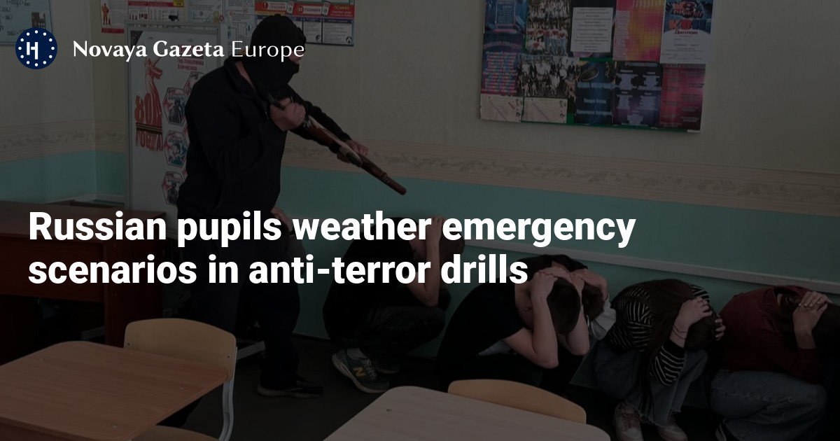 Agentstvo reported finding 800 cases across social media of educational establishments carrying out the course, with dramatic photographs showing adults aiming mock-up automatic weapons at children sitting in a corridor, or classrooms or face down on the floor with their hands over their heads.